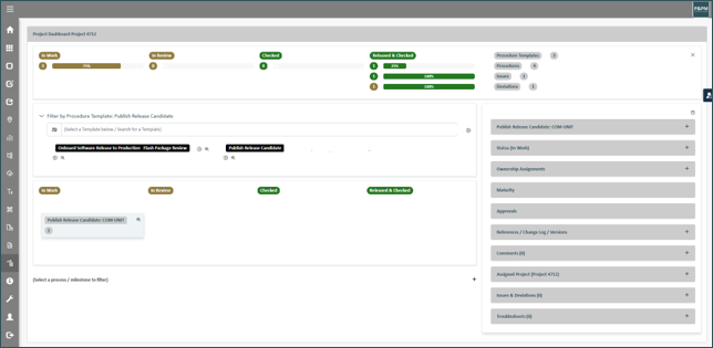 Track the execution of procedures via project dashboards and by this keep track of the readiness of your milestones and project steps.